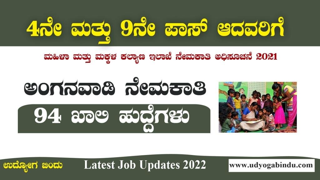 ಅಂಗನವಾಡಿ ಉದ್ಯೋಗಗಳು 2022: Karnataka Anganwadi Recruitment 2022 | Bidar | Government Jobs In Karnataka 2022 | Udyoga Bindu