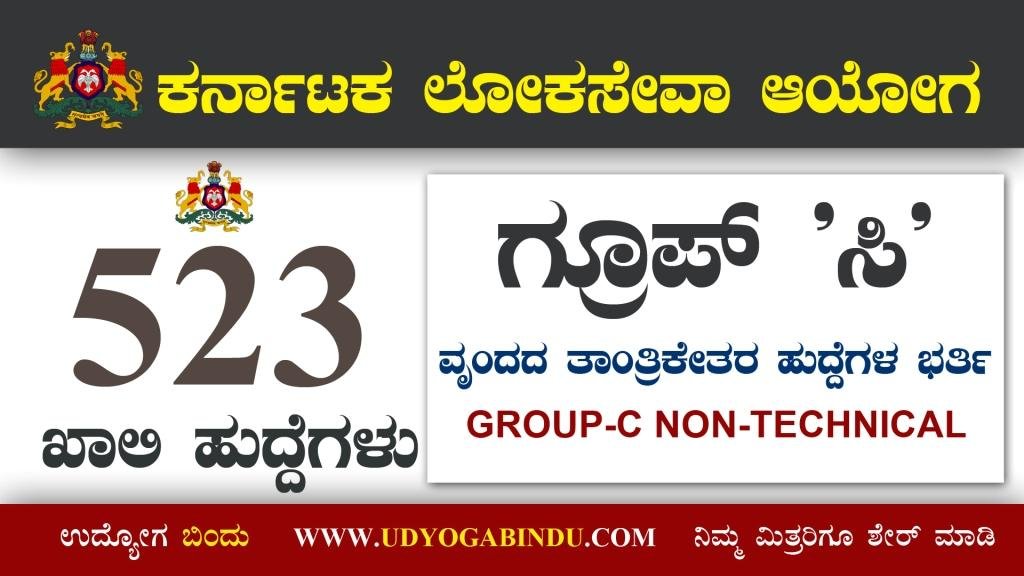 ಕರ್ನಾಟಕ ಲೋಕಸೇವಾ ಆಯೋಗವು ವಿವಿಧ ಗ್ರೂಪ್ ‘ಸಿ’ ವೃಂದದ ತಾಂತ್ರಿಕೇತರ ಹುದ್ದೆಗಳನ್ನು ಭರ್ತಿ ಮಾಡಲು ಅಧಿಸೂಚನೆ ಹೊರಡಿಸಿದೆ.
